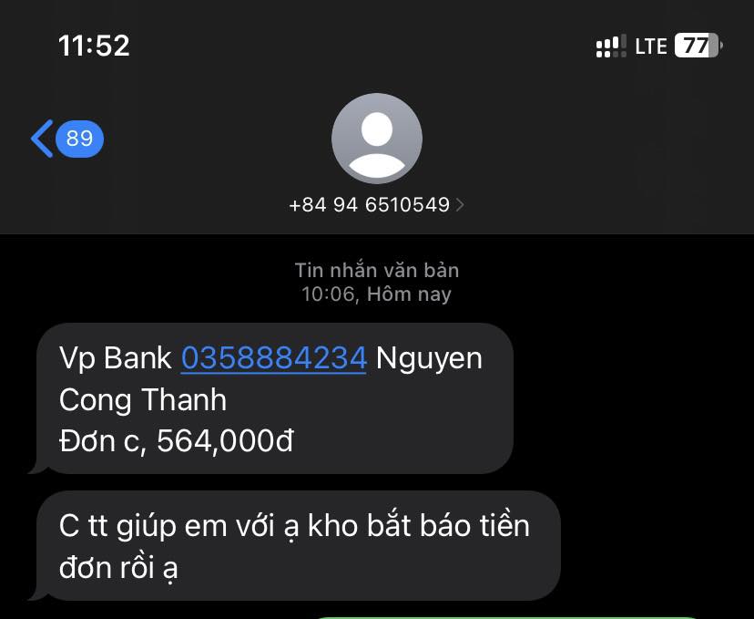 Và sau họp mình ra lấy nhưng chú bảo vệ nói chẳng ai đến giao nhưng lúc đó người hối trả tiền liên tục vì cần nộp tiền cho kho và mình không muốn ảnh hưởng người khác nên đã chuyển tiền