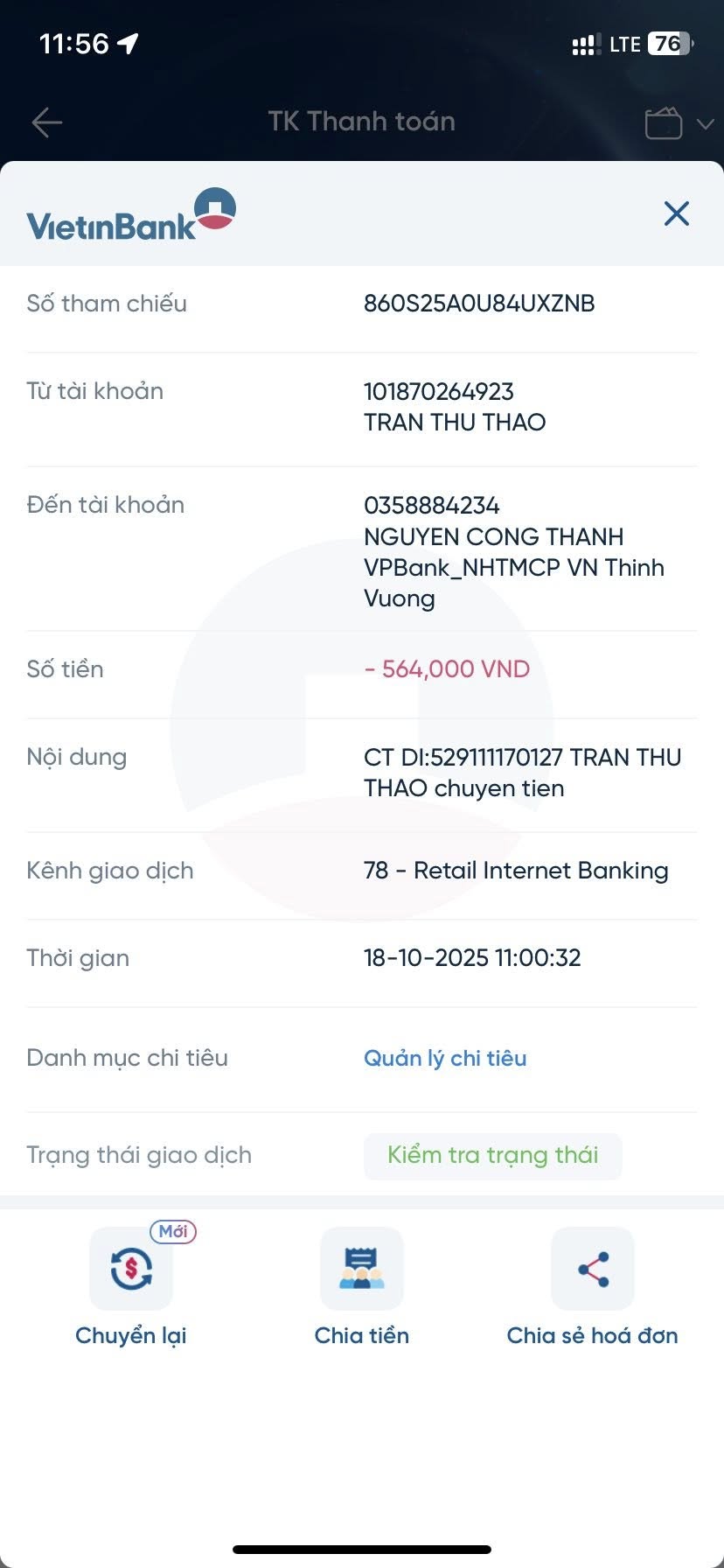 Cho đến thời điểm hiện tại, thông tin tài khoản nguyen cong thanh - chủ STK: 035****234 đã bị cảnh báo 1 lần trên hệ thống UyTin360.