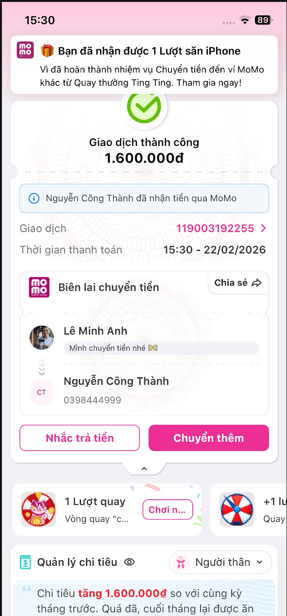 Cho đến thời điểm hiện tại, thông tin tài khoản Chủ TK: Nguyễn Công Thành - chủ STK: 039****999 đã bị cảnh báo 1 lần trên hệ thống UyTin360.