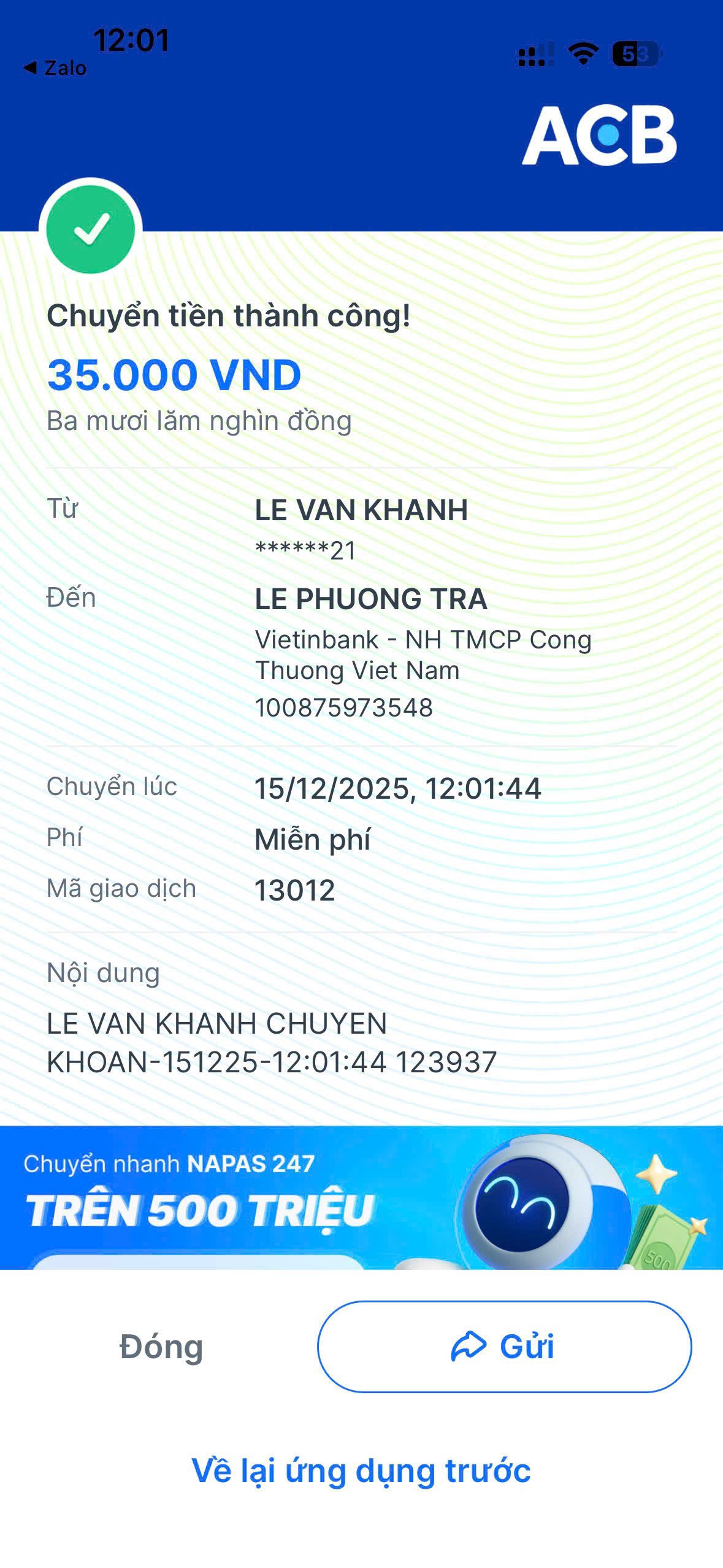 🔎 Bài cảnh báo LE PHUONG TRA.