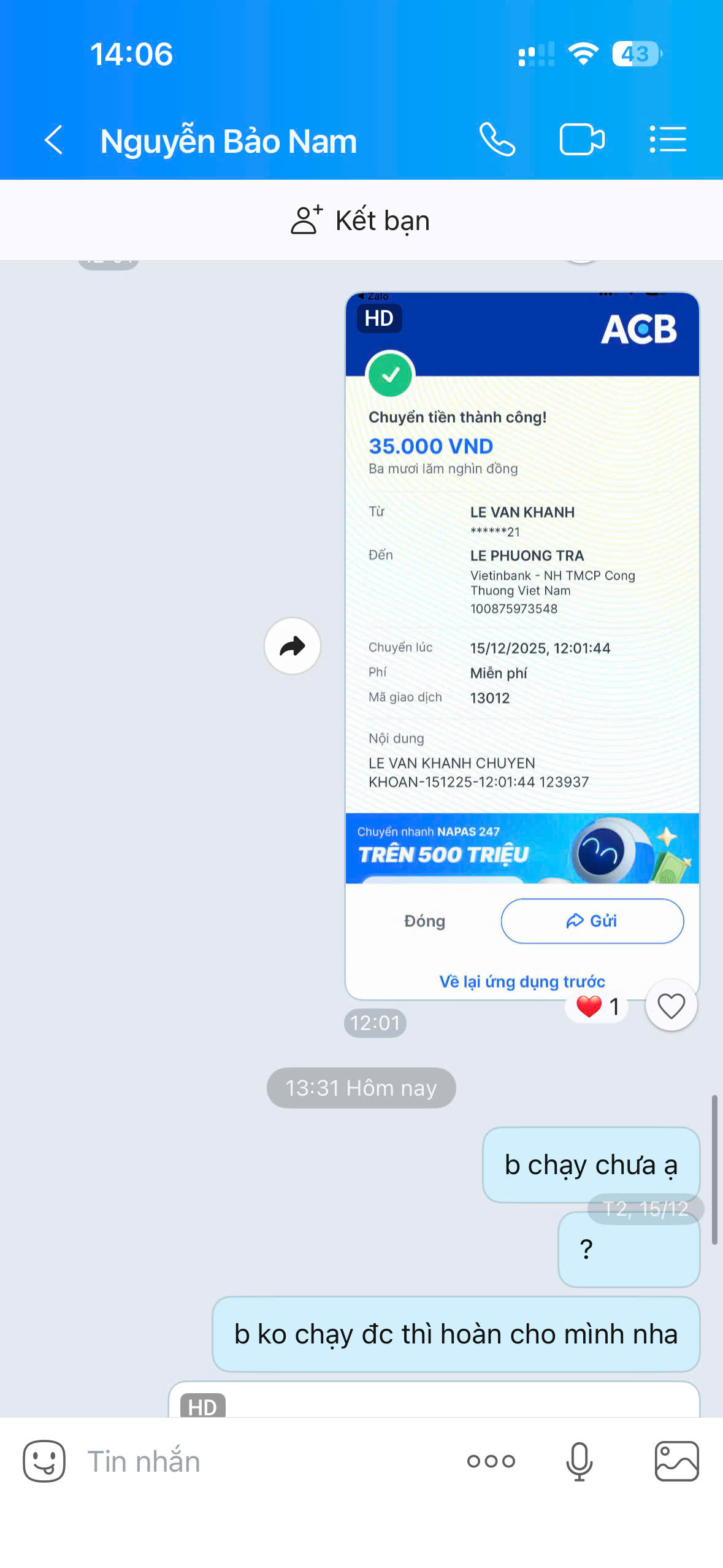 Vui lòng gửi "Link bài tố cáo" và số Zalo liên hệ trong bài tố cáo này tới Admin